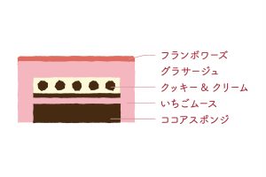 ふんわりとしたいちごムースの中に、しっとり食感のココアスポンジとクッキー&クリームを忍ばせました🍪